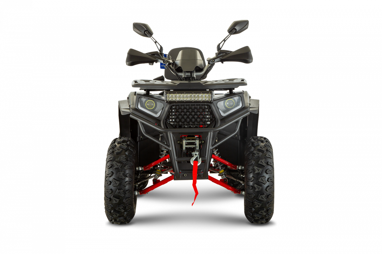 Регулируемая по жесткости передняя и задняя подвеска, надежная КПП с удобным рычагом переключения передач (F-N-R) в верхней части квадроцикла, а также максимально тяговитый и мощный 4-х тактный двигатель делают этот аппарат одним из лучших на рынке.