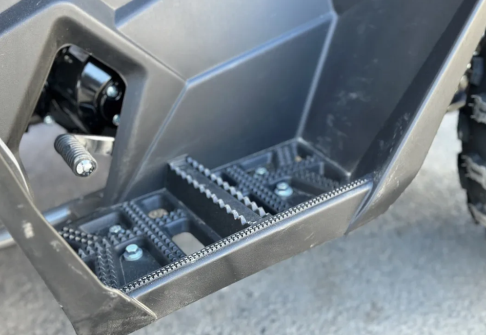 Дизайн квадроцикла продуман для любителей пересеченной местности. Высокий клиренс, глубокие колесные арки, закрытые подножки – максимальная защита от брызг и грязи, чтобы ничего не отвлекало от намеченной цели. Галогеновые лампы с отражателем направленного типа от General Electric – лучший выбор для любителей бездорожья. Светодиодный габарит-стопсигнал для безопасности. Багажники с декоративными накладками для большего комфорта и уверенного внешнего вида.