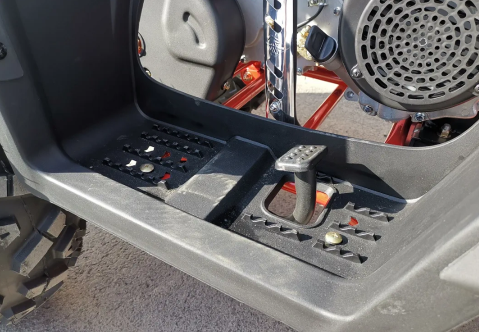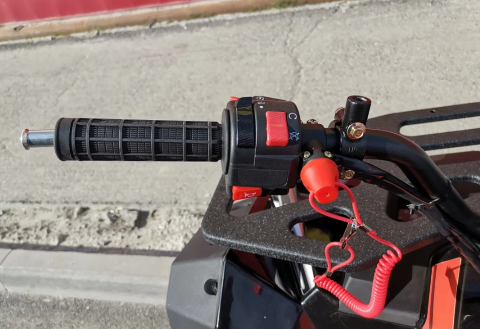 Гидравлическая тормозная система, замкнутая в общий контур, который равномерно распределяет нагрузку на все колёса, с вентилируемыми тормозными дисками Nippon (Hitachi) отвечают за эффективное торможение. Регулировка хода курка газа – если вы учите своего ребенка общению с техникой.
