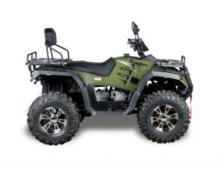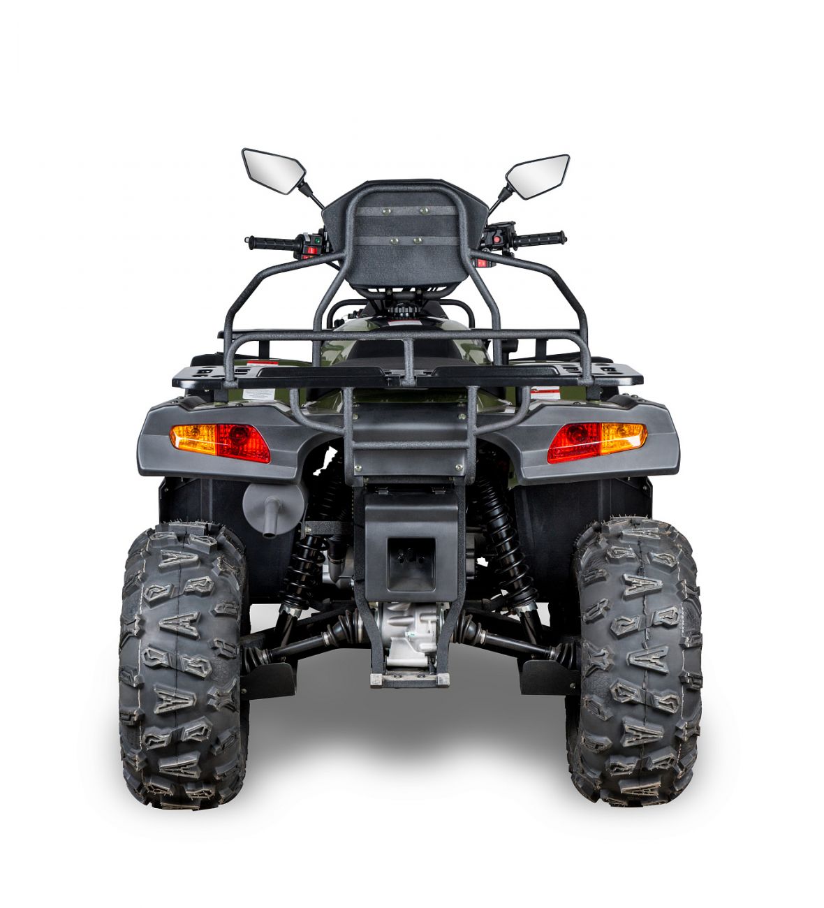 Подключаемый полный привод с блокировкой дифференциала значительно улучшает проходимость квадроцикла и его управляемость на сложных участках дороги, позволяя эффективно распределять крутящий момент между осями и предотвращать занос.