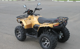 Независимая передняя подвеска позволяет легко маневрировать и держать уверенно курс. В наличие задний ход. На квадроцикле установлены большие внедорожные шины размером 23 дюйма передние и 22 дюйма задние. На задней оси установлены дополнительные защитные кожухи.