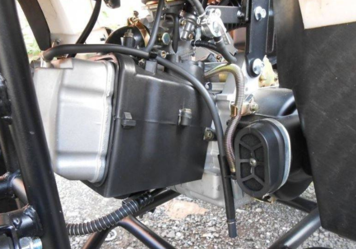 Квадроцикл оснащен двигателем 161 QMK на 200 см3 c воздушно-маслянным охлаждением и автоматической коробкой передач с реверсом, дисковыми тормозами, электростартером.