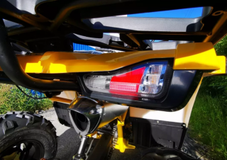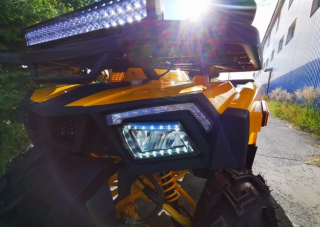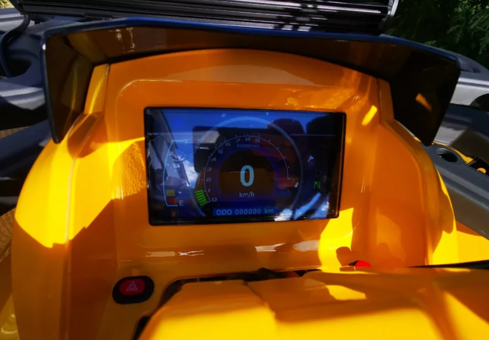 Квадроцикл оснащен двигателем 161 QMK на 200 см3 c воздушно-масляным охлаждением и автоматической коробкой передач с реверсом, дисковыми тормозами, ЖК панелью приборов, светодиодной оптикой с ДХО, ручным и электростартером.