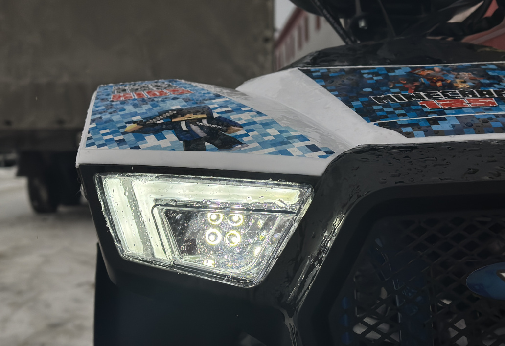 - Наличие поворотников и современных светодиодных фонарей спереди и сзади - улучшает безопасность техники на дороге и внешний вид самого квадроцикла.