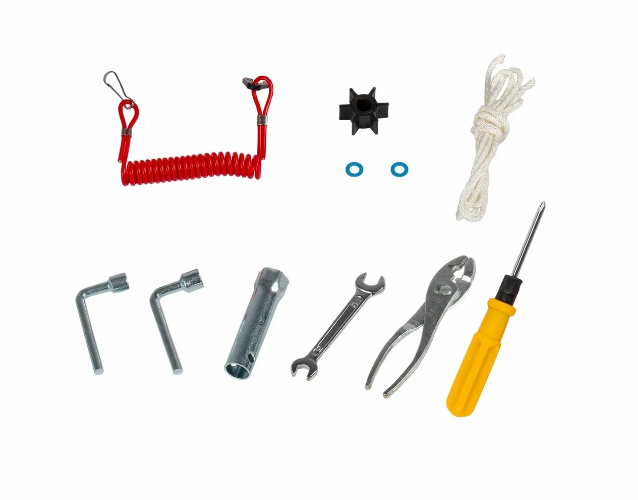 Gladiator G5FHS запускается ручным стартером, а управляется стандартным румпелем с поворотной ручкой газа (гашеткой мотоциклетного типа) с анти-проскальзывающими насечками. Для облегчения запуска холодного двигателя в конструкции карбюратора предусмотрена воздушная заслонка, с регулировкой на корпусе. А для контроля работы системы охлаждения на моторе установлена специальная форсунка. На ручном стартере предусмотрена блокировка, не позволяющая запускать мотор при включенной передаче (запуск возможен только на нейтрали). Переключение передач осуществляется рычагом на правой стороне мотора. Положений у рычага три - вперед, нейтраль, назад. Кнопка остановки двигателя находится непосредственно на корпусе мотора, она снабжена предохранительной чекой экстренного включения. Конструкция струбцины мотора позволяет регулировать рабочий угол атаки (5 положений), а также фиксировать мотор в положении движения по мелководью и полностью поднятом положении. На струбцине предусмотрена петля для крепления страховочного троса. У мотора есть возможность регулировки усилия поворота влево-вправо и усилия поворота ручки газа (гашетки).ТЕХНИЧЕСКИЕ ХАРАКТЕРИСТИКИ