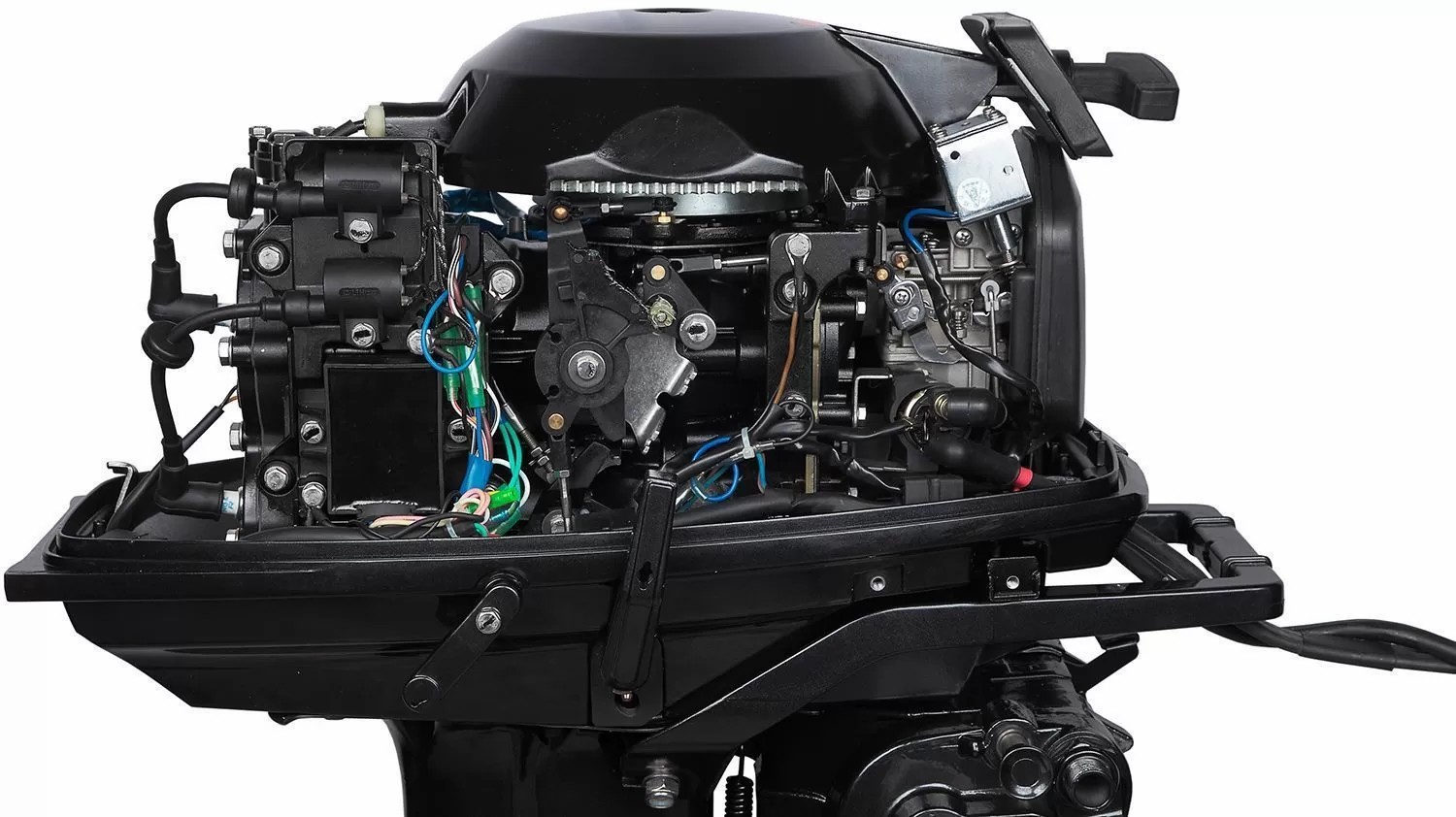 MP 40 AERTL: Лодочный мотор Marlin Outboards, двухтактный, 40 лошадиных сил, электрический запуск двигателя, дистанционное управление, гидропривод, длинная нога (дейдвуд).