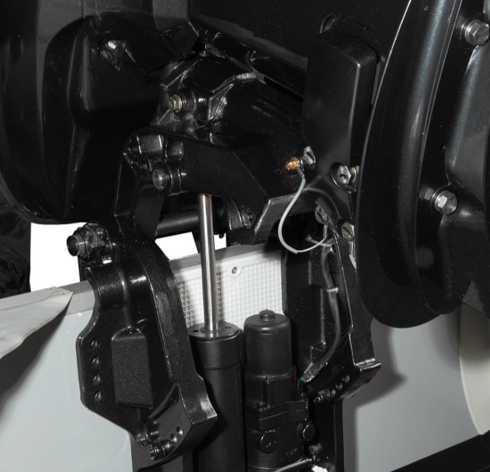 D – Пневмопривод поднятия и опускания двигателя (облегчает откидывание и опускание дейдвуда с помощью рук).
