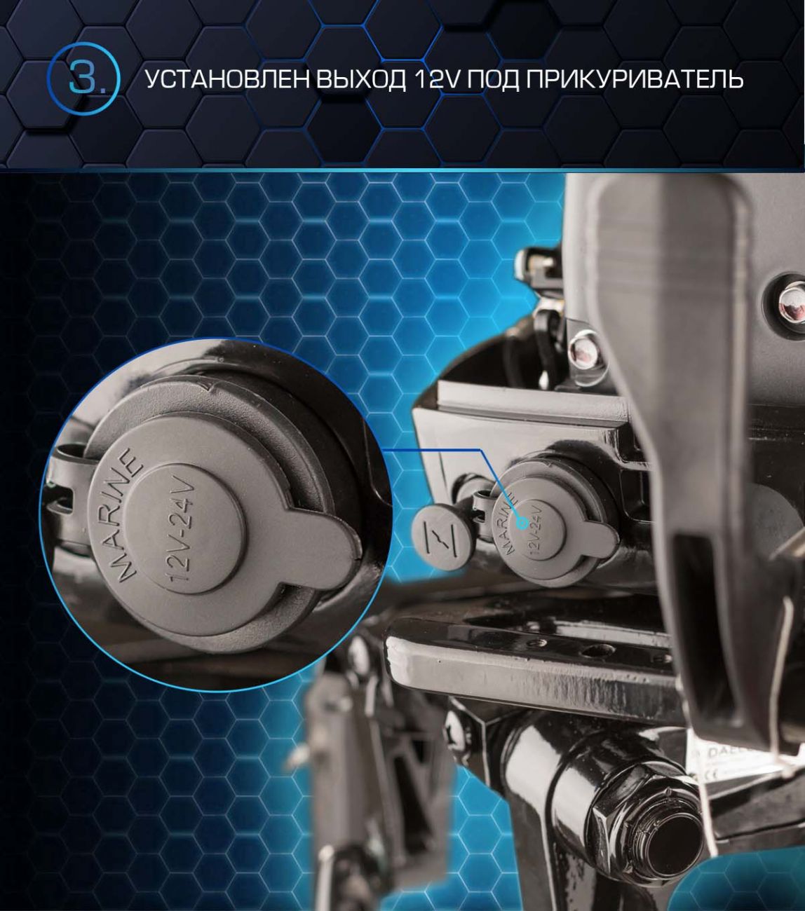 ? Водонепроницаемый универсальный разъём типа SP16, для подключения внешних электро-приборов (фонарь, зарядка, эхолот и т.д)
