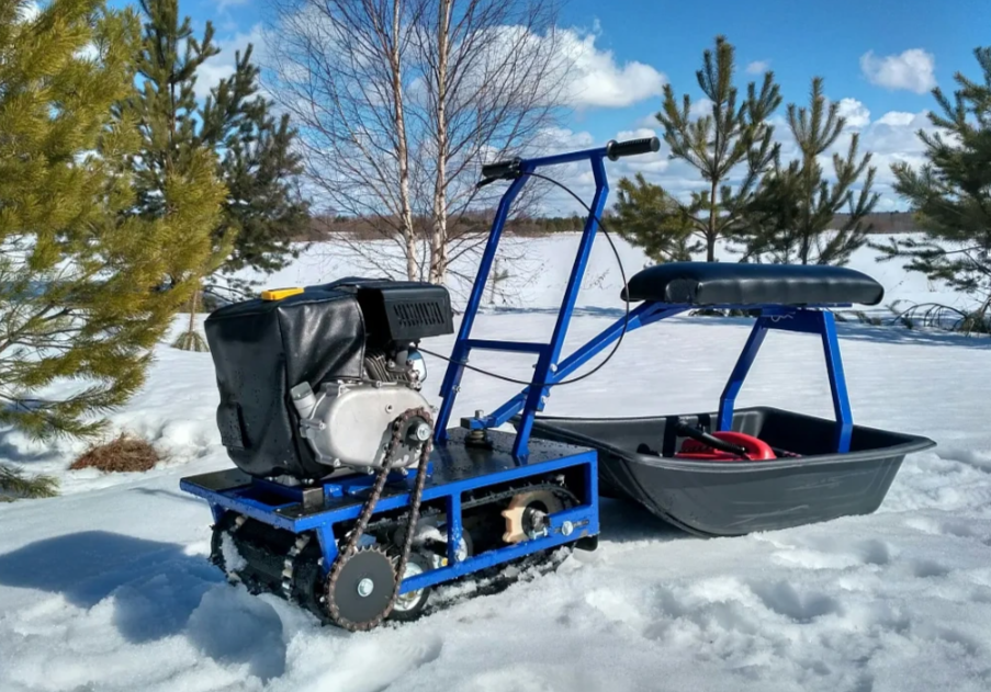 Вес водителя распределен между санями и буксировщиком, что увеличивает его проходимость