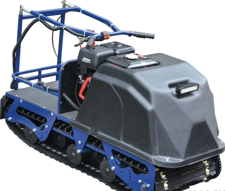 Гусеница «Барс» в сочетании с катковой подвеской позволяет эксплуатировать мотособаку на льду и при отсутствии снега. Руль расположен у основания рамы делает машину максимально управляемой, маневренной и удобной для пользователя.