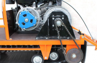 Двигатель смещен к центру на 50 мм с целью улучшения развесовки мотобуксировщика и увеличения общей проходимости.