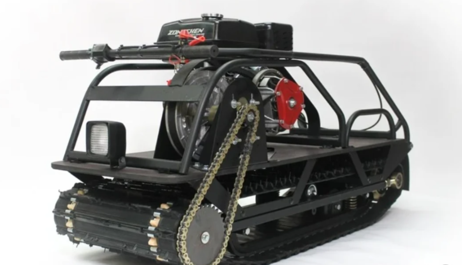 Мотособака оснащена 4-х тактным двигателем Zongshen мощностью 15 л. с., достигающий максимальную скорость до 55 км/ч. Это позволяет быстро перевозить общий груз до 550 кг в санях и на специальной багажной площадке мотобуксировщика. Объем двигателя составляет 420 кубов.