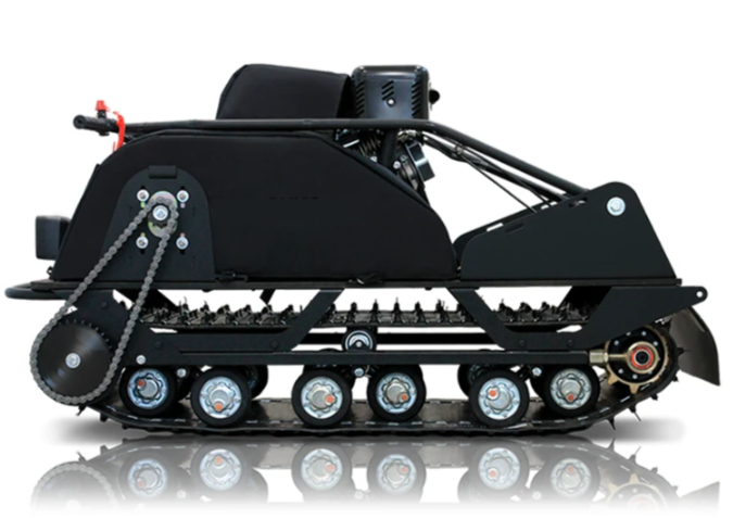 Мотособака оснащена специальной гусеницей Composit, которая обеспечивает отличное сцепление со снегом и со льдом благодаря своим техническим качествам, а также тракторным механизмом натяжения цепи.