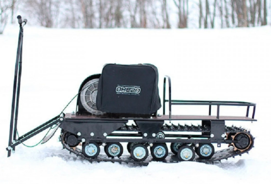 Высокопроходимый мотобуксировщик Онего 550 МД разработан специально для российских широт. Смена рельефа, резкая перемена погоды не страшны для этой техники. Гусеница композит Буран 380 расширена до 550 мм за счет металлического профиля. Сердце мотособаки - это надежные двигатели от мировых брендов Лифан или Хонда 13, 15, 17 л.с. на выбор.В базовой комплектации ручной стартер (дополнительно можно установить электростартер). Подвеска катковая, склизовая или подпружиненные склизы. Устанавливается достаточно большой топливный бак - 5,5 литра минимум (в зависимости от мощности двигателя). При расходе 2,8 л/час его хватает на два часа, вы успеете добраться до любимых мест рыбалки или охоты.