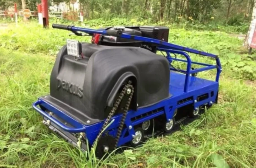 Мотособака весит 100 кг, а размер ее составляет 151 см в длину, 55 см в ширину и 70 см в высоту. Благодаря своей легкости и компактности, мотобуксировщик может маневрировать и проходить по рыхлой и мягкой почве. Кроме того, у мотобукса есть катковая подвеска, которая улучшает ход, обеспечивает устойчивость на неровной поверхности, а также смягчает удары и вибрации от дороги.
