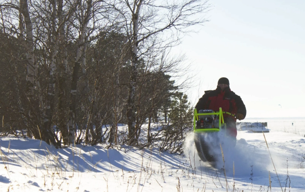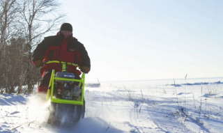 Данный мотобуксировщик поставляется в комплекте с модулем на базе саней-волокуш. Для удобства транспортировки - модуль легко разбирается и все помещается в сани.