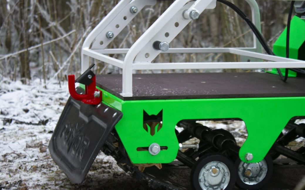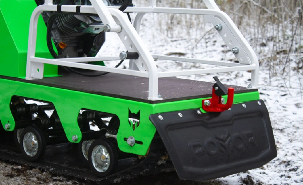 Ходовая часть максимально открыта, что облегчает доступ для очистки гусеницы от снега. Руль имеет регулировку по высоте, а также специальные упоры, которые облегчат переезд высоких препятствий. Трос газа имеет двойную оплетку, что увеличивает его срок службы и менее подвержен обмерзанию в морозы.