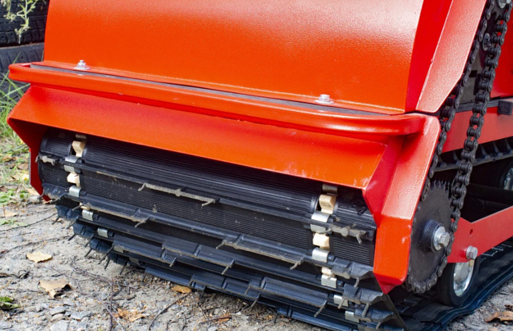 Мотобуксировщик с цельной гусеницей шириной 600 мм, высота грунтозацепа 17,5 мм.