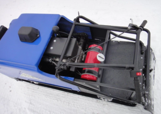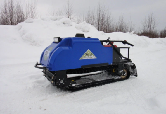 В транспортном положении (со сложенным рулем) мотобуксировшик очень компактен и помещается в багажник автомобиля. Для перевозки в машине буксировщик можно поместить в стандартные сани-волокуши. При этом растаявший снег останется в волокуше.