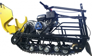 В конструкции мотовездехода используется цельная резиновая гусеница Composit шириной 500 мм. Гусеница в сочетании с катковой подвеской способна проходить спокойно по льду и даже по территории без снега.