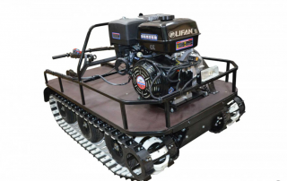 Гусеничная ходовая часть. Две широкие гусеницы, шириной - 210 мм, расположенные друг от друга на расстояние - 430 мм, что обеспечивает буксировщику большую точку опоры и при езде по неровным поверхностям не дают ему заваливаться набок. Гусеничная лента изготовлена из резинового полотна классификации «Арктик» с высоким содержанием высококлассного капрона и резины. Раздельные траки из высокопрочного и износостойкого полиуретана и стальные грунтозацепы по паре на каждый трак