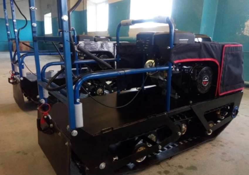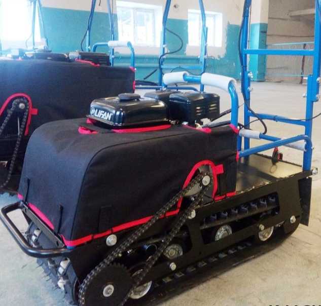 В конструкции мотовездехода используется цельная резиновая гусеница шириной 500 мм. Площадь опоры гусеницы улучшает тяговые характеристики, проходимость и устойчивость буксировщика.