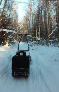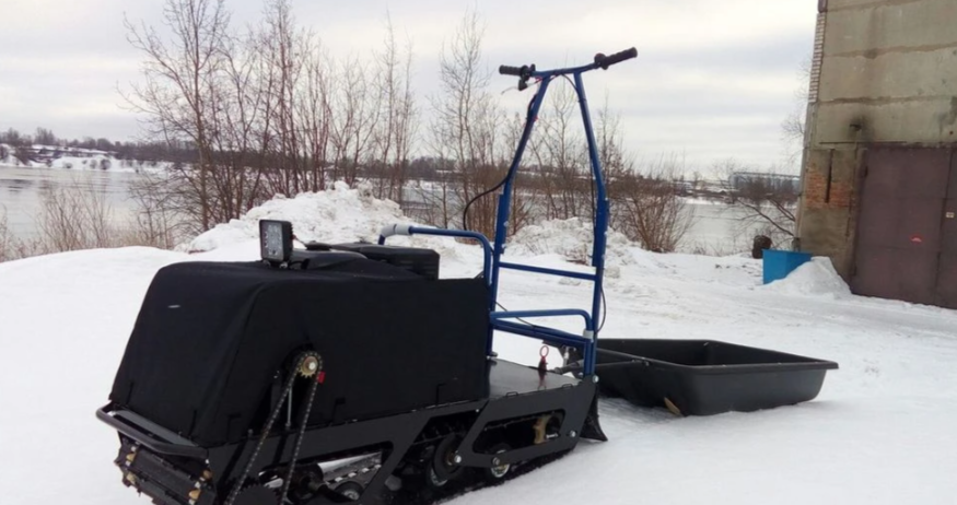 Мотопес отличается простой конструкцией и сборкой - двигатель, вариатор и гусеница, закрепленные на раме. В отличии от снегоходов, они компактнее (помещаются в багажник любого легкового авто), дешевле и маневреннее.