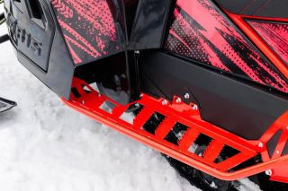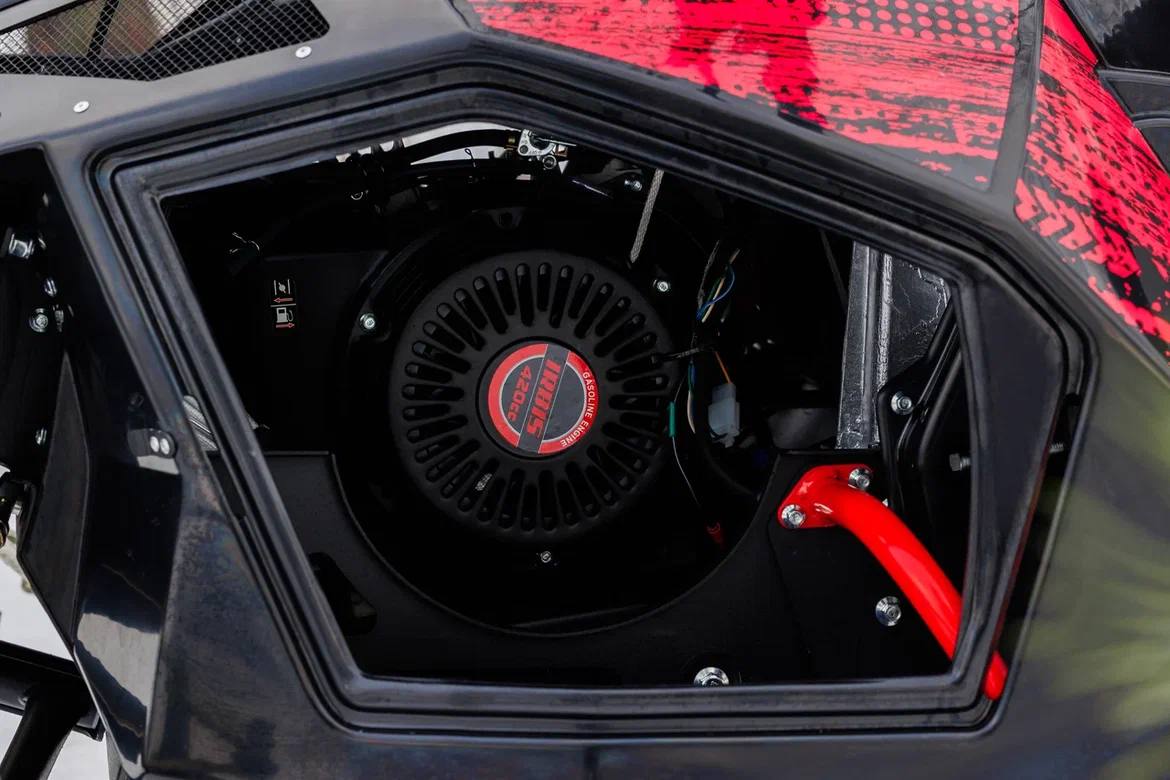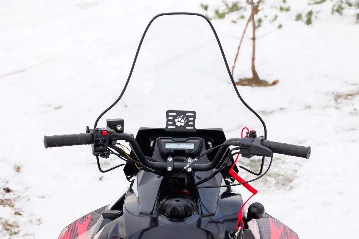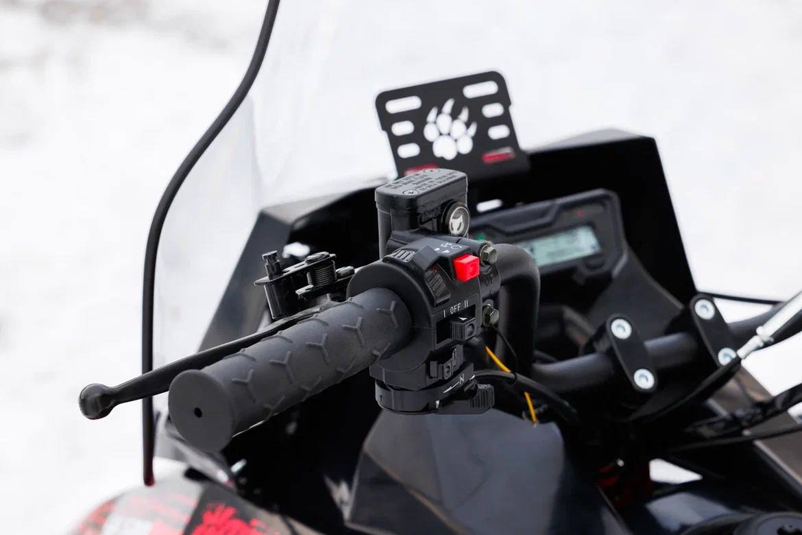 Снегоход комплектуется двухпозиционным подогревом ручек руля и курка газа, розеткой для внешних приборов 12V, электронной многорежимной панелью приборов, системой аварийного глушения двигателя, системой ручного запуска двигателя, гидравлическим дисковым тормозом с функцией стояночного тормоза. Большое комфортное сиденье с подседельным кофром объемом 42 литра.